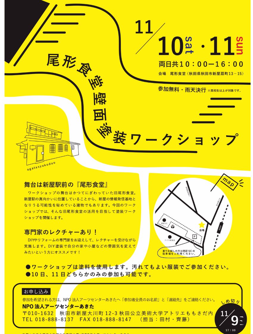 秋田の景観デザイン研究会が主催で11/10〜11は秋田市新屋駅前にて、ペイントワークショップを開催します!