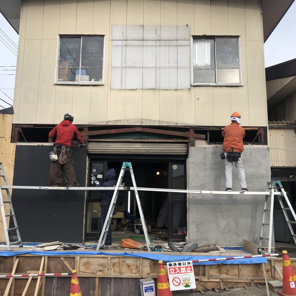 JR新屋駅の真向かいにある旧尾形食堂の利活用実験に向けて、外壁、内壁の塗り替えを行うこととなりました。