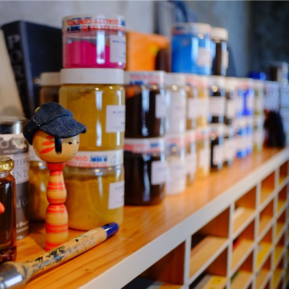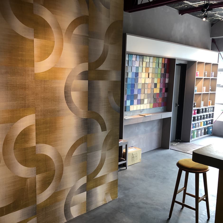 秋田では初である輸入壁紙の切り売り、左官材の量り売り、好みの色彩をその場で店頭調色する機材の導入だけでなく、