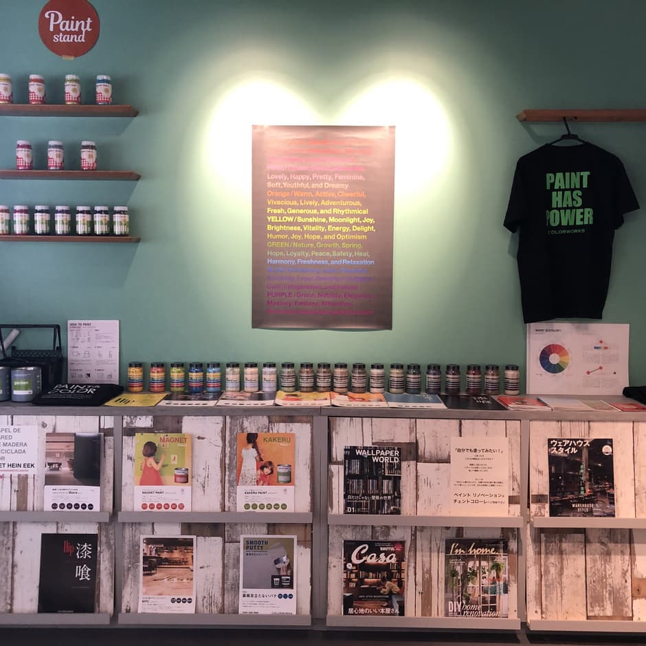 「ペイントスタンド」「ポーターズペイント」「輸入壁紙」「モールテックス」「ワークショップ」等々、写真を中心にご覧いただくことが可能です。
