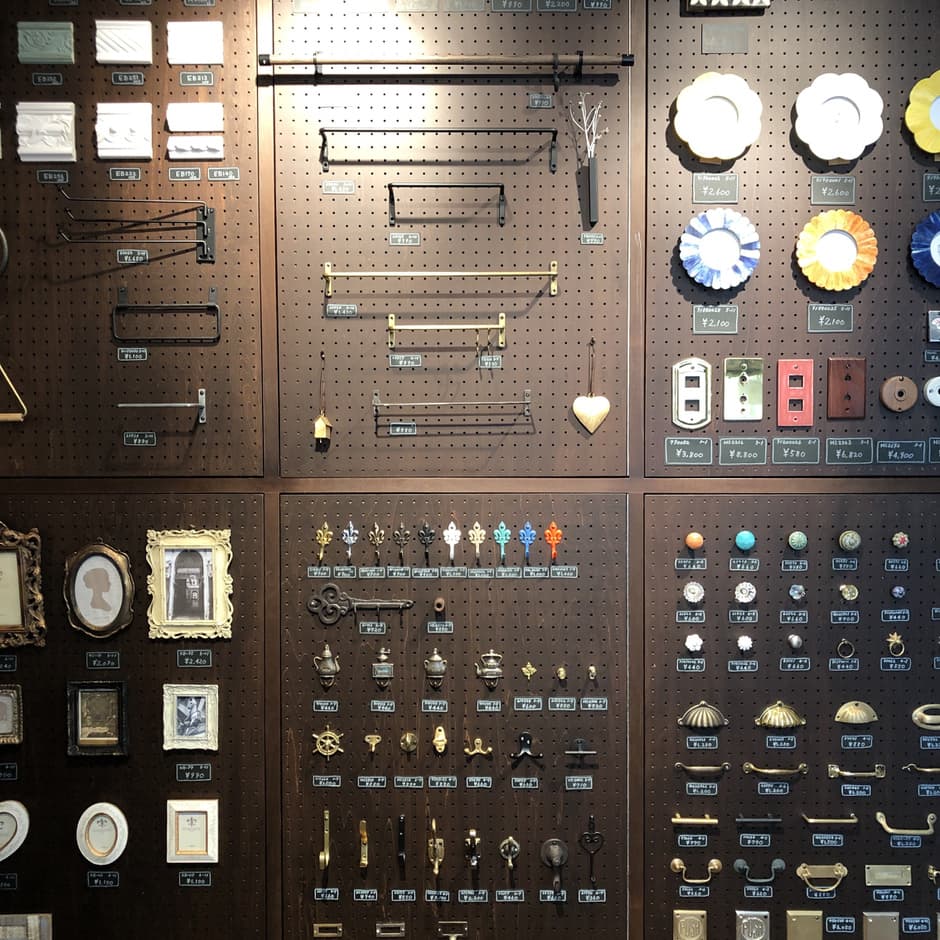 ホームセンターでは在庫していないクールなDIY用品や、建材パーツを展示しています。