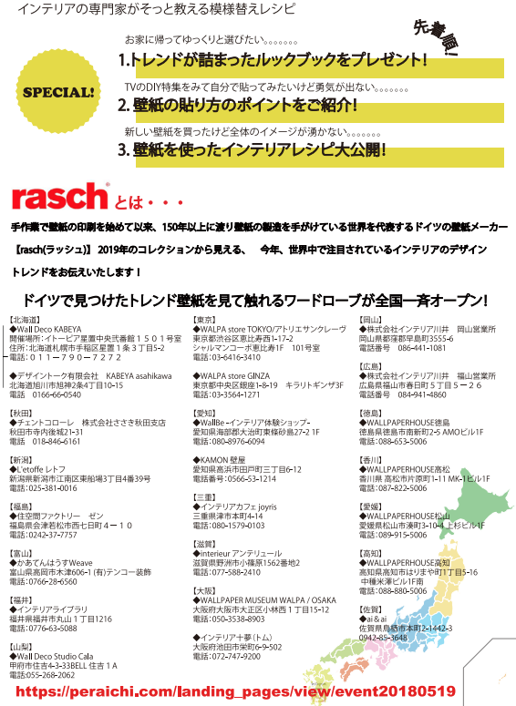 皆さんにもっとraschを知って頂こうと全国一斉新作発表会が各地で開催されます。