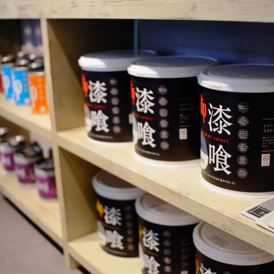秋田では初である輸入壁紙の切り売り、左官材の量り売り、好みの色彩をその場で店頭調色する機材の導入だけでなく、