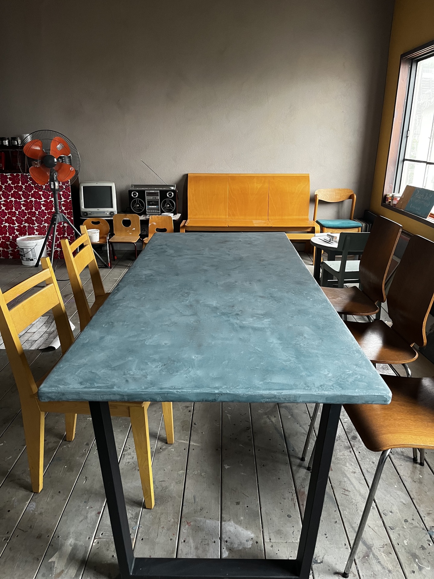 チェントコローレでは、あの美しいモルタル仕上げのマテリアル感を、あなたがお持ちの机や台などに施工致します。