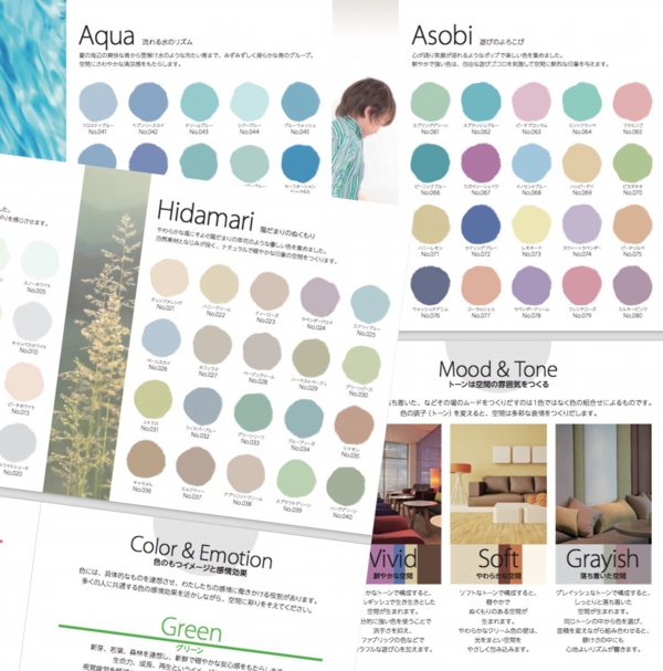 表紙の帯に書いてあるとおり「WALL DECOR WAY」「色彩豊かな住まいへ」、つまり壁やインテリアを「色彩」や「テクスチャー」でもって味付けをして、ライフスタイルをもっと楽しもうと云う特集号になっています。