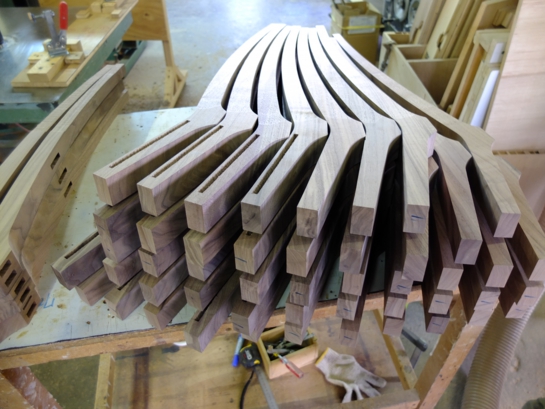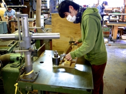 ※est用の脚部 ウォールナット ※真剣な目付きでアールの調整