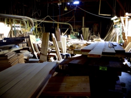 ※インテリアナスの旭川の工場 ※無垢のパーツを選別する置き場